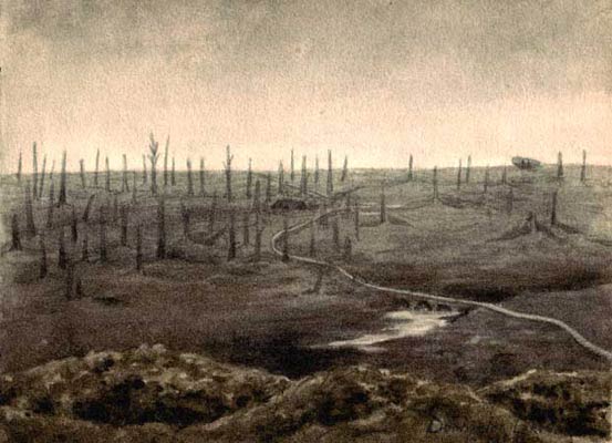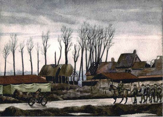 Relieved by Middlesex troups after being in the line for about 5 or 6 days. During this Offensive in our part of the line there was very little retreating, and the most forward poition that the Battlaion took up was near ST. ELOI and we only retired to an old reserve line, which was in very poor and wet condition, but which was made sufficiently strong to withstand the attack of the Germans which at that time had rather lost its intensity. |